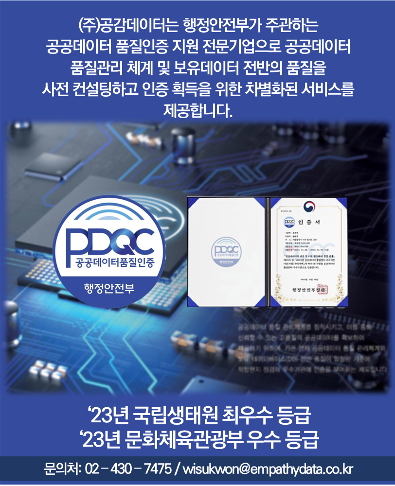 주식회사 공감데이터와 함께 기관의 공공데이터 품질 관리 수준을 높이시길 바랍니다.